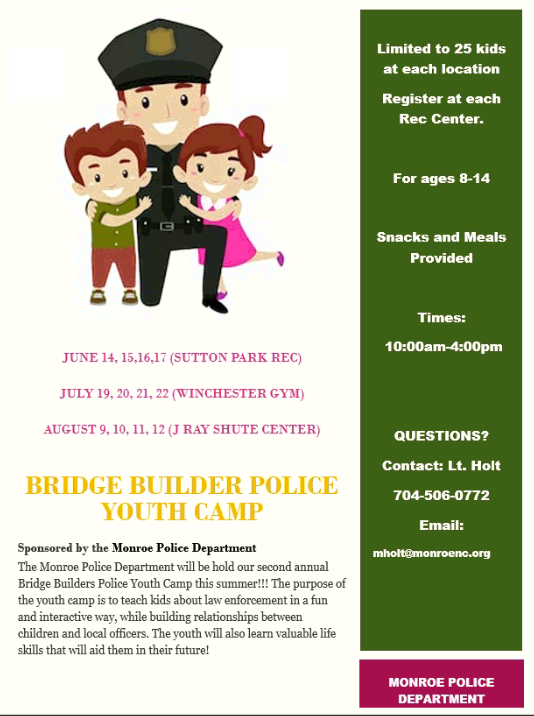 Questions? Contact Lt. Holt 704-506-0772 or by email at mholt@monroenc.org